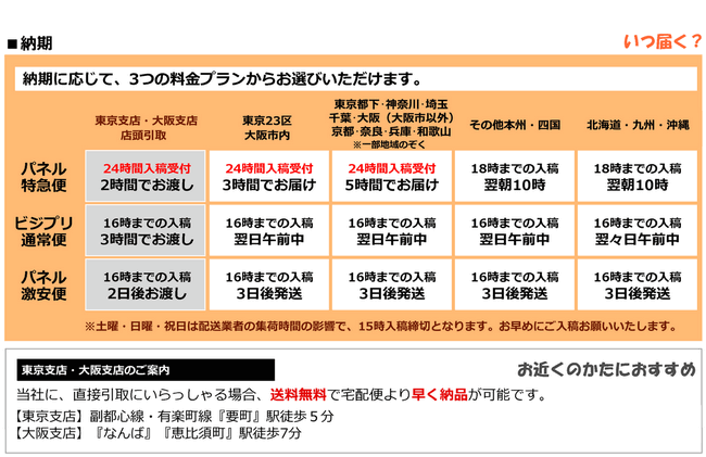 | 東京23区 | 24時間入稿受付 3時間でお届け |